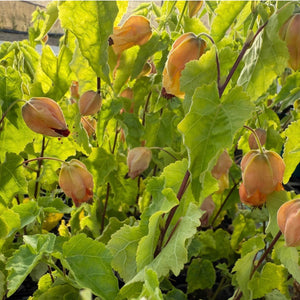 Buttery yellow and peach flowers hang like lanterns amongst the vibrant green foliage of this attractive shrub from spring to autumn. A more compact variety of Chinese lantern. Prefers partial shade in warmer climates and is drought and heat tolerant once established. Growing to 1.5m wide and 1.5m in height, this variety adds colour and structure to the garden year-round while also attracting birds and other pollinators.