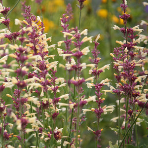 Like most agastaches, the free-flowing blooms of 'Lemon Fiesta' provide a continuous display throughout the warmer months with little to no effort required. The soft yellow flower spikes and contrasting burgundy calyx make this variety unique and an eye-catching feature in the garden, from the front to middle of a border. Great for cutting and floral arrangements, the never ending flower spikes ensure a continual array of pollinators in the garden. Varieties of Agastache mexicana are commonly used in folk medicine, essentially due to its calming properties and for alleviating arthritic, muscular and abdominal pain. Try the highly aromatic young leaves as a flavouring in salads and cooked foods.