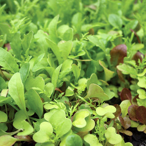 1. Pour ½ cup of seeds into a jar or container and cover with 2 cups of water. Leave to stand for 12–24 hours. 2. Place a thin layer of seed raising mix in a seedling tray to a depth of around 1.5–2cm. Water and allow to drain. 3. Drain the seed and spread evenly over the seed raising mix. 4. Wet a second seedling tray and place it upside down over the first tray to create a darkened dome. 5. Wet the dome every 2–3 days days until the seed germinates. 6. Uncover and place in a bright, sunny position, away from direct sunlight. Only water when the mix is dry to avoid fungal problems. 7. Harvest when ready using snips or scissors to avoid spreading growing mix through your fresh, healthy greens.