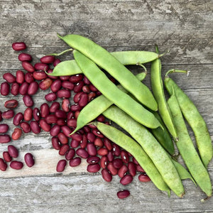 A compact, low-growing bush bean developed by David Marray, and generously donated by a Diggers member in 2015. ‘Ann Michelle’ is a semi-veining bean with distinctive red seeds, selected for its high protein content and versatility in the kitchen. While it can be shelled and eaten fresh like a traditional “shell bean,” it also performs beautifully as a dry bean — ideal for soups, stews, or long slow cooking once the seed has fully matured and dried.