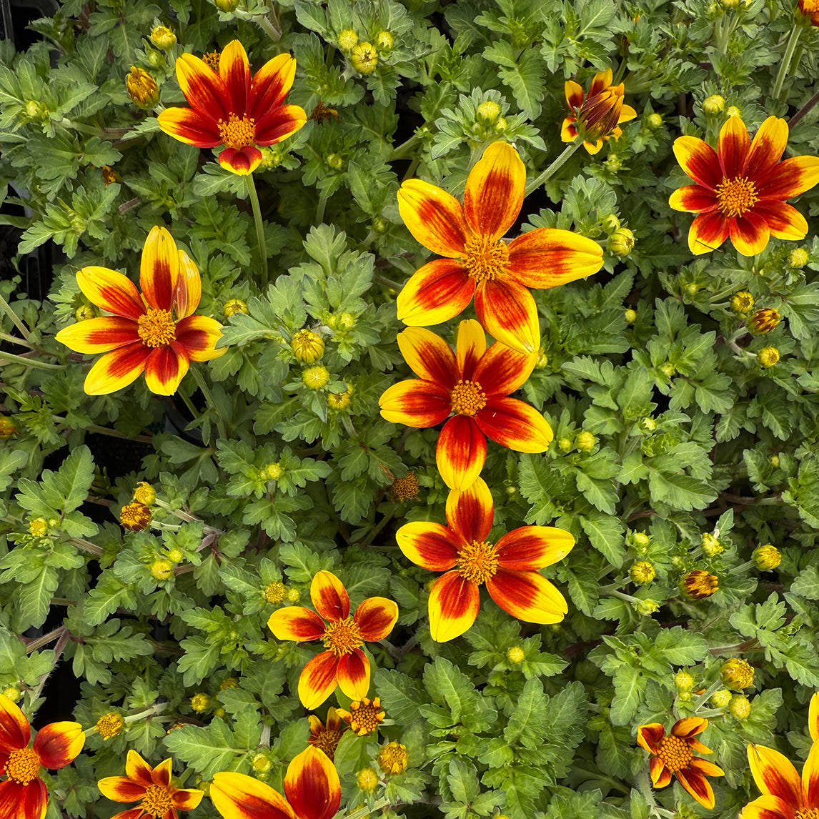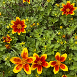 This evergreen perennial features in the Cloudehill hot border. Beautiful bicolour blooms of yellow and orange. This low growing dome shaped plant is covered in flowers through summer, attracting bees and butterflies to the garden. Plant in full sun in well-draining soil. A great addition to pots and front of borders. Grows to 30cm in height and 60 cm wide.