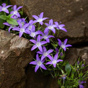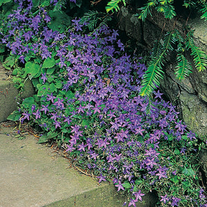 An ever-popular low maintenance evergreen, spreading ground cover with green heart-shaped fringed leaves and the prettiest of pale blue-purple star shaped flowers. Bringing colour to your garden from spring through to summer, Campanula posharskyana is extremely hardy and rewarding. The romantic profusion of flowers makes this old fashioned favourite a perfect choice for cottage gardens, rockeries and slopes, as well as hanging baskets.
