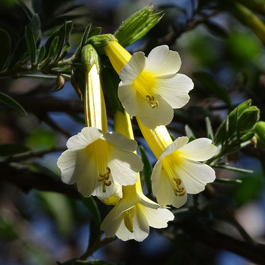 Cantua buxifolia 'Golden Inca' is a broadleaf semi-evergreen shrub with green foliage. In spring and summer yellow flowers emerge. Features glossy texture. Bird attracting. Grows well with mostly sun - mostly shade and even moisture - regular water. Does well in rich and well-drained soil.