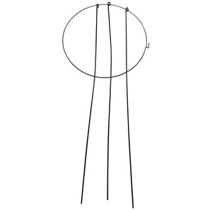 Support tall flowers and plants at anytime with this durable ring flower support. Made from plastic-coated steel, this ring can be fitted at anytime to support plants in windy positions or with heavy flowerheads and top growth. The green colour blends in seamlessly with the surrounding foliage, while the ring allows adequate support for most established bushy plants and flowers. To install, simply wrap the hoop around the fully grown foliage or flowers and hook the ends of the wire together. Push the legs firmly into the ground to the desired height, and that's it! Maximum height 90cm high with a ring diameter of 37.5cm.
