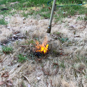 Kill weeds without chemicals using this lightweight flame wand with its auto-ignition. Ideal for killing all weeds in gravel or paved paths, patios and garden beds, the flame burns weeds at a safe distance, eliminating the need to use nasty chemicals that will poison your soils. Our gardeners use this method to control weeds at our organically certified gardens to great effect. Gas cartridges are easily available at any hardware store for around $14 each and each will last for hours. You only need to just cause the weed to 'collapse', not totally 'burn' for a more economic control. To use: Hold the Flame over the top of the weed and wait until the leaves start to turn upwards, then move onto the next weed. You do not have to completely burn the weed to kill it. Best used with propane which burns hotter & kills weeds faster (and therefore uses less gas). WAND ONLY, GAS CANISTERS NOT INCLUDED. Wand comes with 12 month warranty. Size: 87cm long.