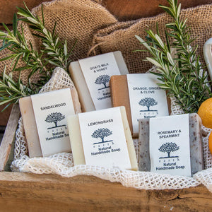 Handmade in the beautiful Swan Valley region of WA from all natural ingredients, this selection of aromatic soaps are petrochemical free and suitable for all skin types. Available fragrances include: Sandalwood, Lemongrass, Orange, Clove and Ginger, Spearmint and Rosemary, Cinnamon and Oatmeal, Goats Milk and Honey. Each bar is approx 100g.