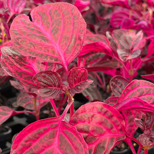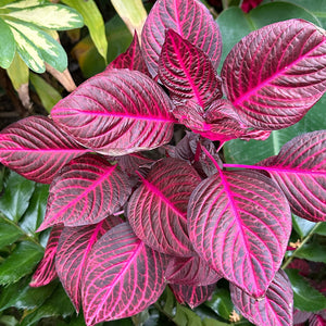 Collected from Heronswood garden under the big Moreton Bay fig. This vibrant perennial with burgundy foliage brightens any shade area in your garden. Native to Brazil it leaves are rich crimson with pink veins. Purely selected for its foliage and also a great indoor plant.