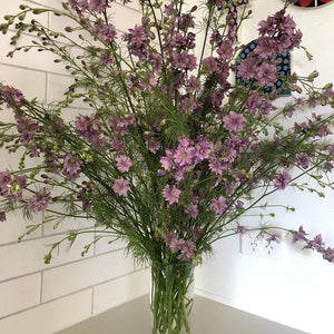 Treat seeds to a week in the freezer before sowing or at least two weeks in the fridge in a moist bag. Sow directly in late autumn or early spring. Larkspurs dislike transplanting so avoid root disturbance. If started in trays, use a biodegradable pot or pellet to avoid disturbing the roots so that seedlings can be planted pot and all. * Please note: All parts of larkspur are poisonous, including the seeds. Use caution around children and pets.