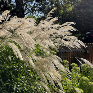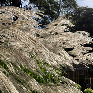 A beautiful and sought after evergreen clumping grass with slender green leaves that remain green throughout the year. Arching flower heads are held high above the foliage starting in spring and lasting into winter. Makes an excellent addition to floral arrangements. With it attractive foliage and graceful inflorescences swaying in the breeze, this Miscanthus is a must have addition to the garden.
