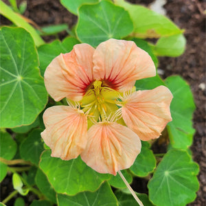 Appealing peach salmon flowers truly glow from this compact Nasturtium. The piquantly pepper flavour of the edible flowers and leaves will truly transform any salad mix. An easy direct sow seed and valuable addition to the vegetable patch with companion qualities to distract pests from prized vegetables.