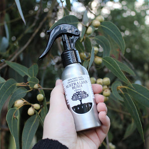 Natural Australian Bush Mist - Ingredients: purified water, solubiliser infused with pure essential oils of lemon myrtle, tea tree, lemon scented eucalyptus gum and peppermint.