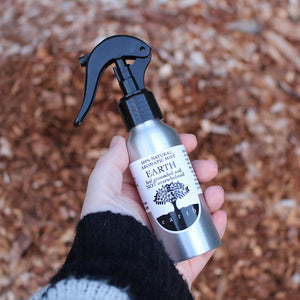Natural Earth Spray Mist - Ingredients: purified water, solubiliser infused with pure essential oils of rose geranium, patchouli, nutmeg, cassia and vetiver.