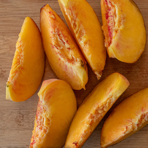 Originated in Fresno, california by U.S. Dept. of Agriculture in 1969. Peach 'Flavorcrest' is a mid-season standout with rich, sweet flavour and firm, golden flesh. Heavy cropping and self-fertile, it’s ideal for small orchards or backyard growers. Enjoy sun-ripened fruit straight from the tree, summer harvests don’t get better than this
