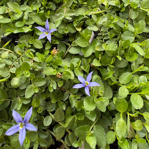 Pratia is a dense low-spreading evergreen ground cover. The small round leaves are covered by small deep blue star-shaped flowers from spring through to summer. Strong spreading habit making it a great plant for heavy foot traffic and can be used on pathways. Growing tightly along the ground it can spread up to 50cm. It tolerates full sun and part shade.
