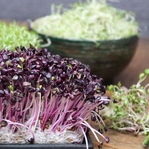 1. Pour a thin layer of sprout seeds in your container or jar. Only just cover the base. 2. Half-fill the jar with water and leave to stand for 24 hours. Cover with muslin cloth and secure with an elastic band. 3. Drain and rinse again. Leave in a bright position inside, away from direct sunlight. 4. Rinse twice a day, morning and night, shaking seed to turn it over in the jar. 5. Continue for 5–7 days and harvest.