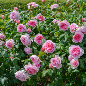 Plant in an open, sunny position, in free-draining, neutral soil that is rich in organic matter. Water deeply to encourage strong roots when establishing and provide supplementary watering during dry periods. Roses are heavy feeders and will benefit from organic fertiliser, twice-yearly in heavy soils (spring and late summer) or four times in sandy soil. Deadhead regularly for repeat flowering. Prune in late-winter for size and shape, leaving new long canes to produce next season's flowers. Tie or fan canes into position.