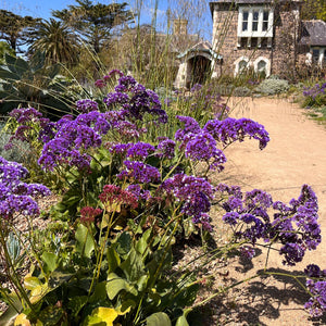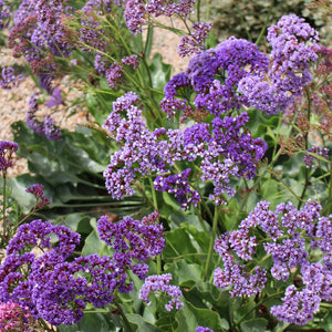 With everlasting purple-blue papery flowers ageing to white, Sea Lavender is known for its tough, resilient nature and ability to produce flowers almost all year round. Its leathery, wavy foliage makes a handsome evergreen mound above which tall flower spikes float like a sea of lavender. This versatile plant will take all the heat, drought and exposure that our southern summers can inflict, and is a must-have for all sunbaked, dry, windy and salt-licked gardens. Great for the bees and as a long-lasting cut flower.