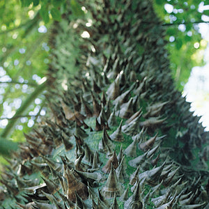 The spectacular Silk Floss Tree, formerly known as Chorisia speciosa, is a highly ornamental medium-sized tree that deserves a place in any garden. Its distinctive bottle-shaped trunk with its thorny exterior provides an intriguing textural element, while the canopy of vibrant pink and white orchid-like flowers are a sight to behold in late summer and autumn. This South American native copes well in our dry climate, being drought and coast tolerant once established. The attractive seed pods of Ceiba speciosa produce a silk-like substance that was historically used as stuffing for pillows, mattresses and life jackets up until the advent of synthetic fibres.
