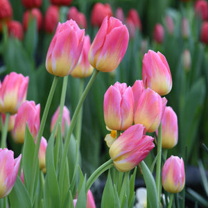Named for the famous Tompouce Dutch pastry, which is much a mille-feuille with a creamy custard filling and vibrant pink icing, this stunning tulip features vibrant pink petals with a glowing golden base. An outstanding addition to the garden, pots and vases.