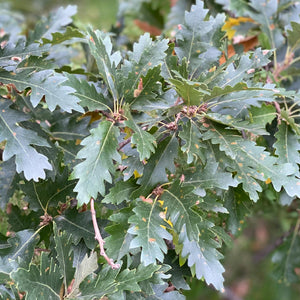 A handsome mid-sized deciduous oak with glossy ornately lobed leaves, which change to a buttery-yellow during autumn. Although known as the Turkey Oak, it is widespread throughout Asia Minor and southern Europe. Mature specimens develop a rounded crown, with lower lateral branches weeping with age. Tolerant of salt spray, it becomes a particularly useful windbreak for coastal areas. Medium growth rate.