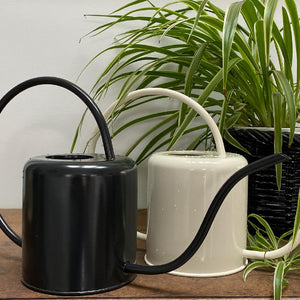 There's no need to hide this elegant galvanised metal watering can away in a cupboard, instead display it proudly on a shelf among your indoor plants and collectables. This sturdy 1.5lt watering can features a large handle and long spout for easy pouring and a steady stream. Suitable for indoor use. Available in Matte Black or Antique White. Size: 1.5lt