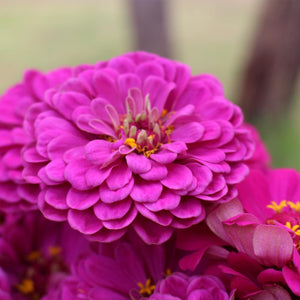 Regal in colour with pronounced purple-magenta, semi-double dahlia-like flowers. This Zinnia holds the panache to inherit the crown with a larger form and large multiple flowers. A bold cut flower that has exceptional resilience in the Australian summer for a tender annual plant.