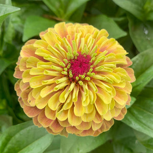 A creamy pastel lime dream of a Zinnia. The variations and colour palette are mesmerising. A delightful relation to the adored Zinnia 'Queen Red Lime'. Natural variation within the variety is an asset with the same excellent qualities shared by all Zinnia - long performance in a vase, repeat flowering for months through tough Australian Summers. Zinnias are often overlooked for their appeal in a different era to our loss as their performance through hot spells is an asset.